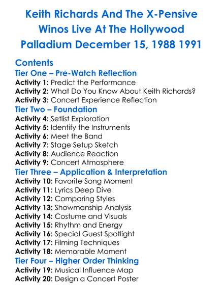 Keith Richards And The X-Pensive Winos Live At The Hollywood Palladium December 15 1988 1991 Worksheet Activity Booklet