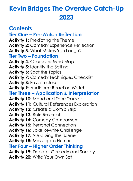 Kevin Bridges The Overdue Catch-Up 2023 Worksheet Activity Booklet