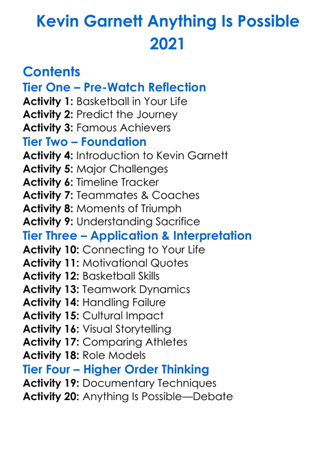 Kevin Garnett Anything Is Possible 2021 Worksheet Activity Booklet