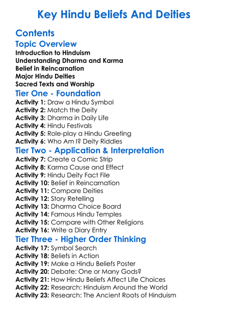 Key Hindu Beliefs And Deities Worksheet Activity Booklet