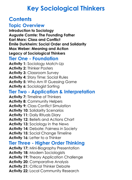 Key Sociological Thinkers Worksheet Activity Booklet