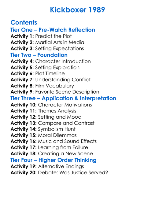 Kickboxer 1989 Worksheet Activity Booklet