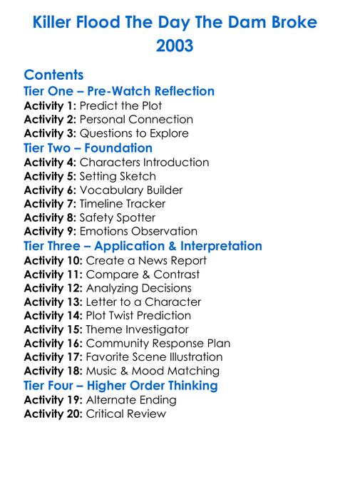 Killer Flood The Day The Dam Broke 2003 Worksheet Activity Booklet