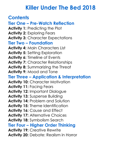 Killer Under The Bed 2018 Worksheet Activity Booklet