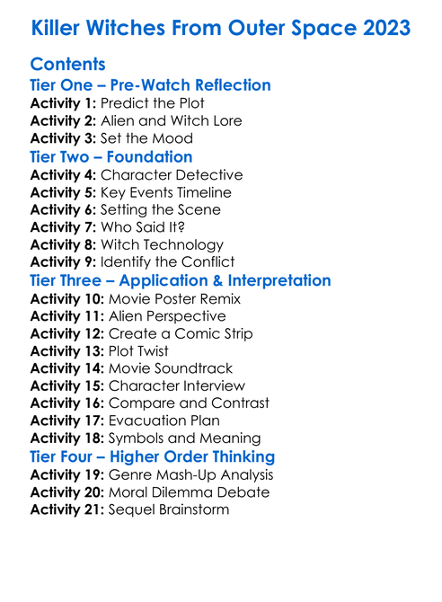 Killer Witches From Outer Space 2023 Worksheet Activity Booklet