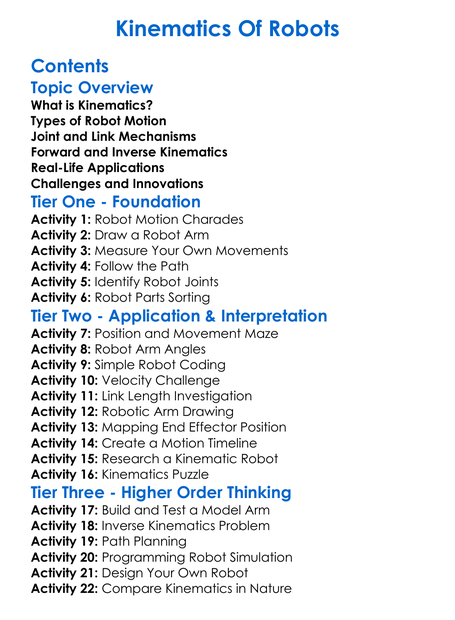Kinematics Of Robots Worksheet Activity Booklet