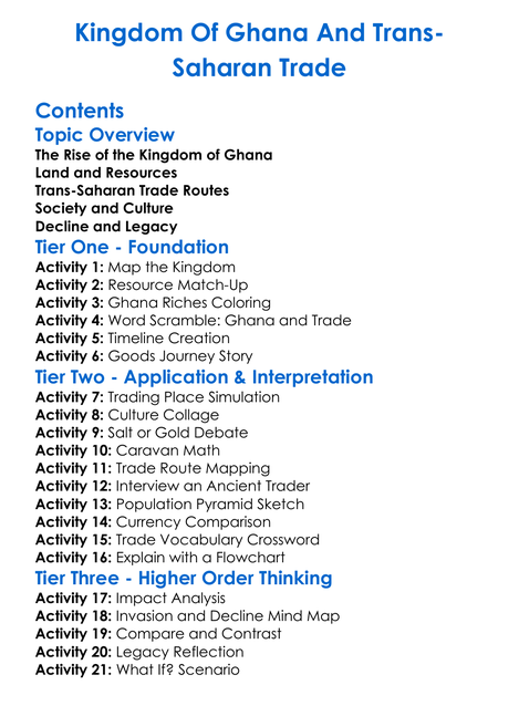 Kingdom Of Ghana And Trans-Saharan Trade Worksheet Activity Booklet