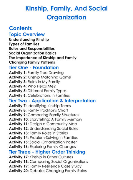 Kinship Family And Social Organization Worksheet Activity Booklet
