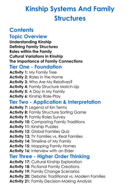 Kinship Systems And Family Structures Worksheet Activity Booklet