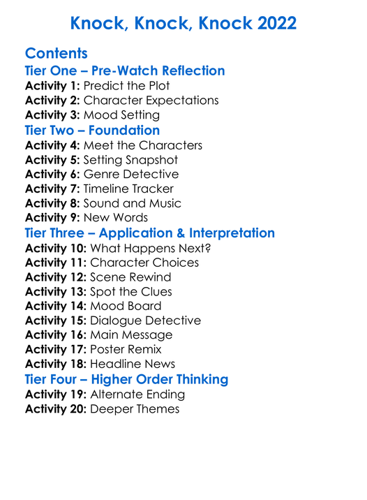 Knock Knock Knock 2022 Worksheet Activity Booklet