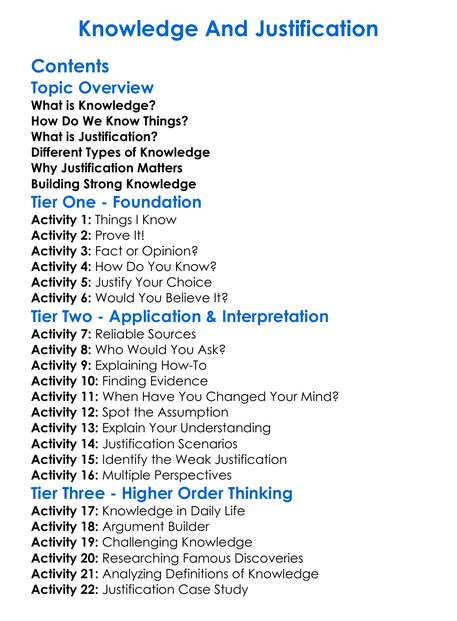 Knowledge And Justification Worksheet Activity Booklet