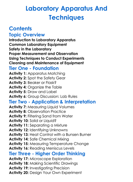 Laboratory Apparatus And Techniques Worksheet Activity Booklet
