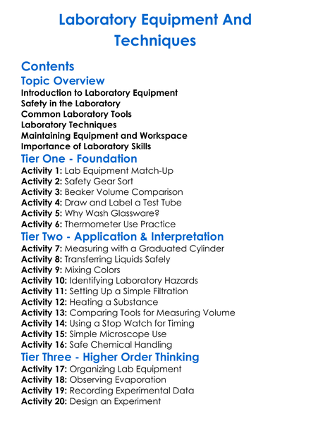 Laboratory Equipment And Techniques Worksheet Activity Booklet