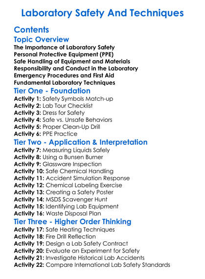 Laboratory Safety And Techniques Worksheet Activity Booklet