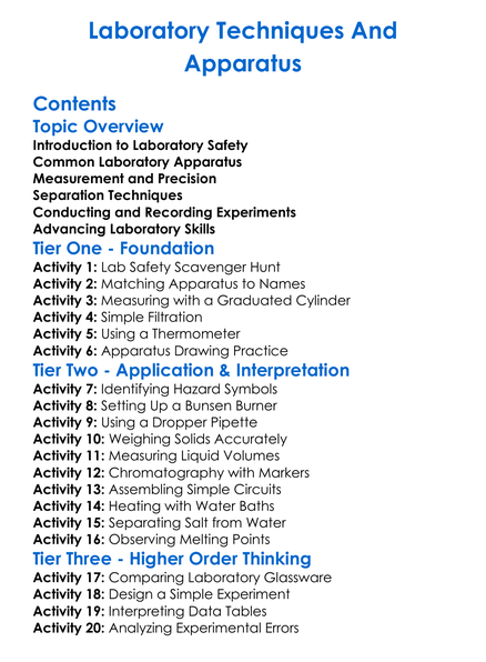 Laboratory Techniques And Apparatus Worksheet Activity Booklet