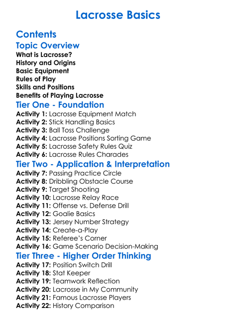 Lacrosse Basics Worksheet Activity Booklet