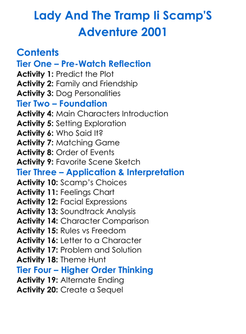 Lady And The Tramp Ii Scamps Adventure 2001 Worksheet Activity Booklet