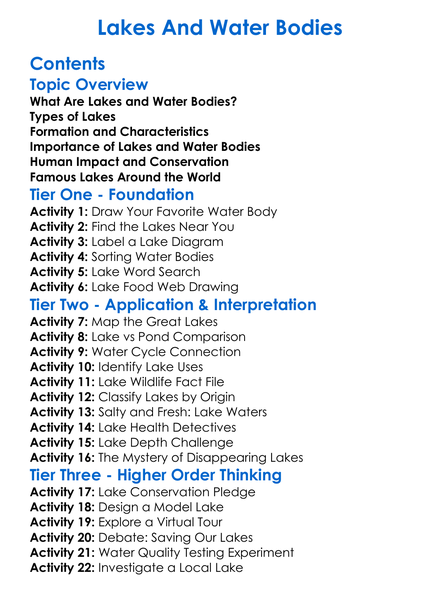 Lakes And Water Bodies Worksheet Activity Booklet