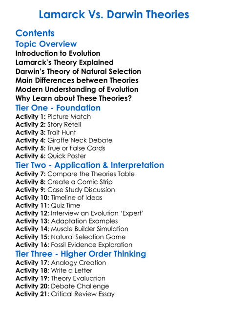 Lamarck Vs Darwin Theories Worksheet Activity Booklet
