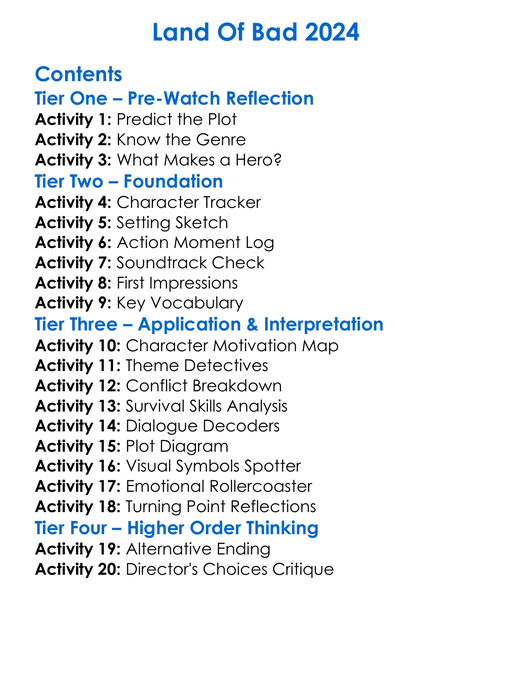 Land Of Bad 2024 Worksheet Activity Booklet