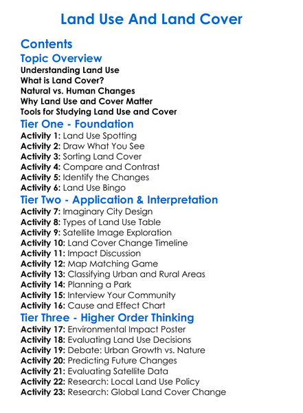 Land Use And Land Cover Worksheet Activity Booklet