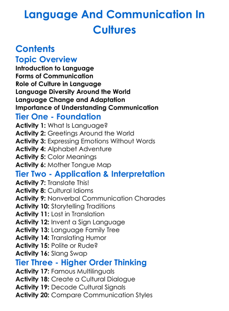 Language And Communication In Cultures Worksheet Activity Booklet
