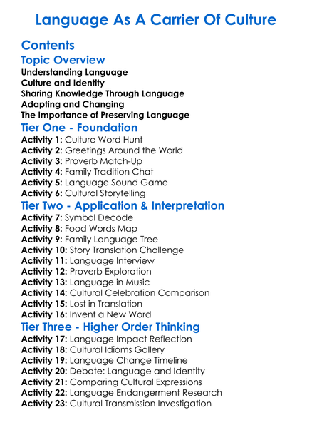 Language As A Carrier Of Culture Worksheet Activity Booklet
