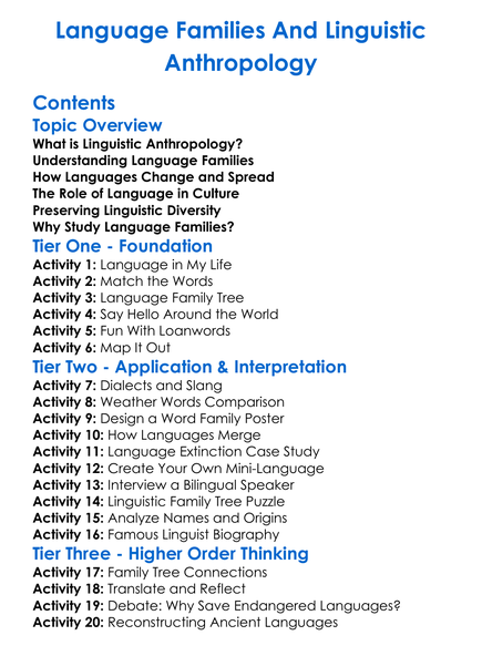 Language Families And Linguistic Anthropology Worksheet Activity Booklet