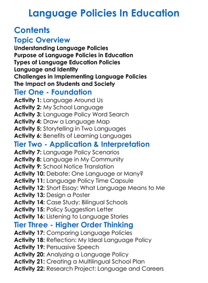 Language Policies In Education Worksheet Activity Booklet