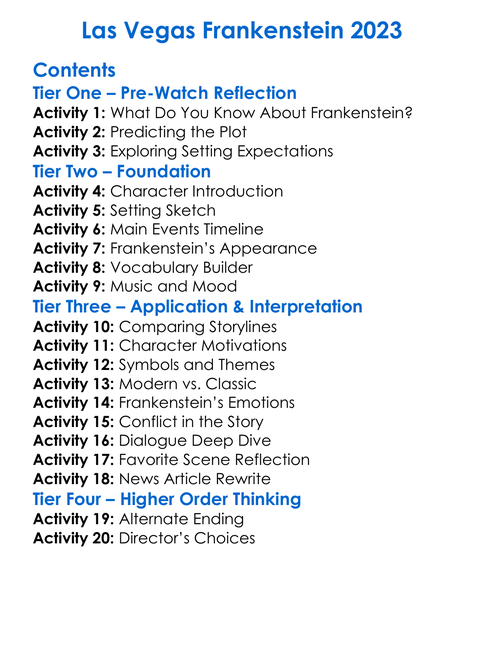 Las Vegas Frankenstein 2023 Worksheet Activity Booklet