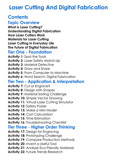 Laser Cutting And Digital Fabrication Worksheet Activity Booklet