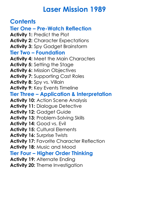 Laser Mission 1989 Worksheet Activity Booklet