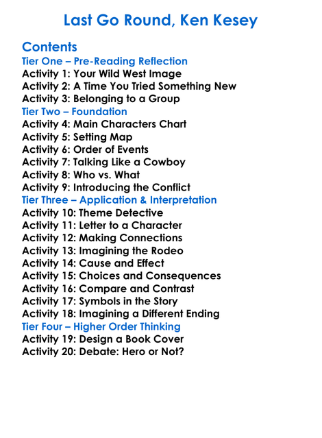Last Go Round Ken Kesey Worksheet Activity Booklet