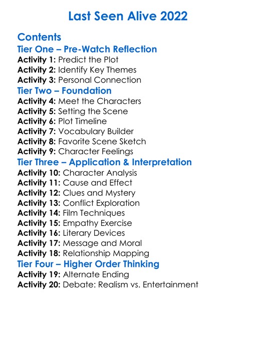 Last Seen Alive 2022 Worksheet Activity Booklet
