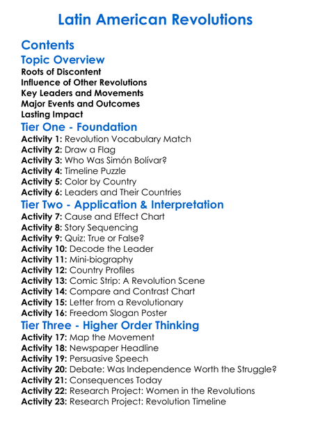 Latin American Revolutions Worksheet Activity Booklet