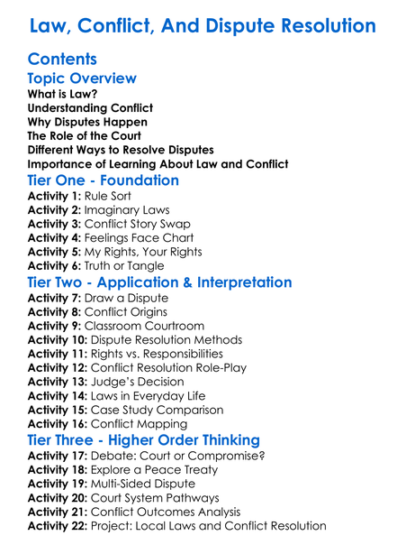 Law Conflict And Dispute Resolution Worksheet Activity Booklet