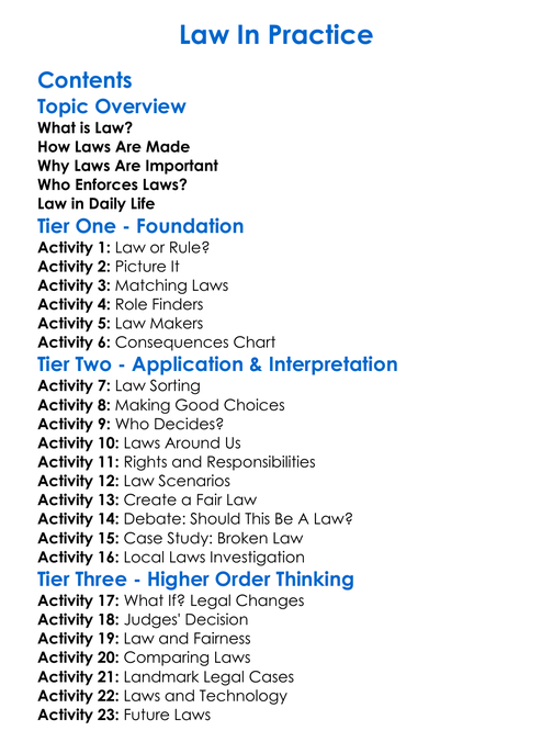 Law In Practice Worksheet Activity Booklet