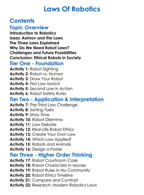 Laws Of Robotics Worksheet Activity Booklet