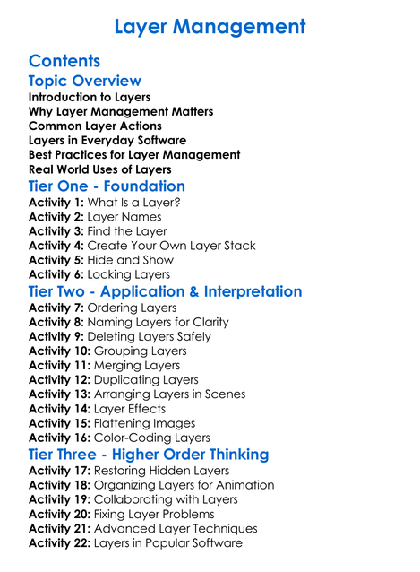 Layer Management Worksheet Activity Booklet