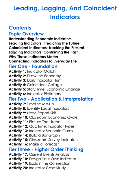Leading Lagging And Coincident Indicators Worksheet Activity Booklet