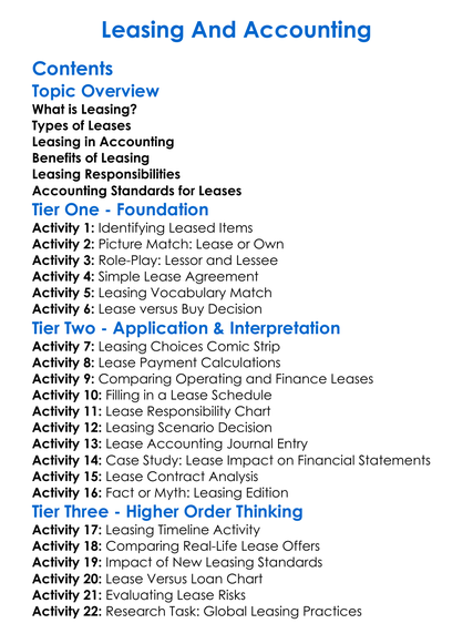 Leasing And Accounting Worksheet Activity Booklet
