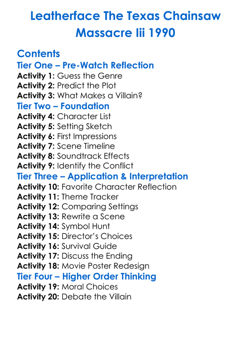 Leatherface The Texas Chainsaw Massacre Iii 1990 Worksheet Activity Booklet