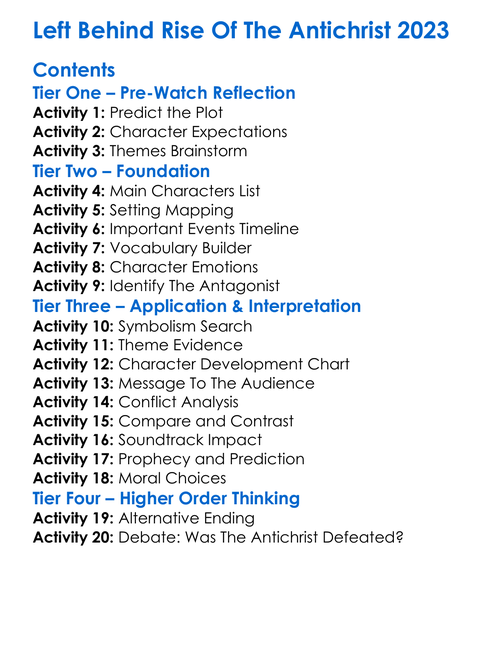 Left Behind Rise Of The Antichrist 2023 Worksheet Activity Booklet