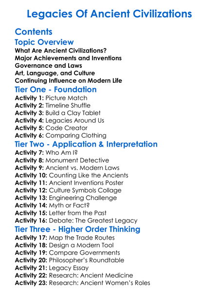 Legacies Of Ancient Civilizations Worksheet Activity Booklet