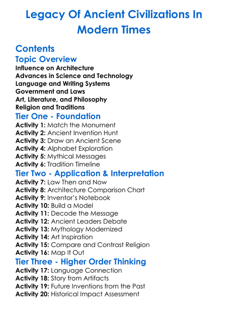 Legacy Of Ancient Civilizations In Modern Times Worksheet Activity Booklet