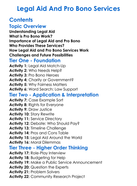 Legal Aid And Pro Bono Services Worksheet Activity Booklet