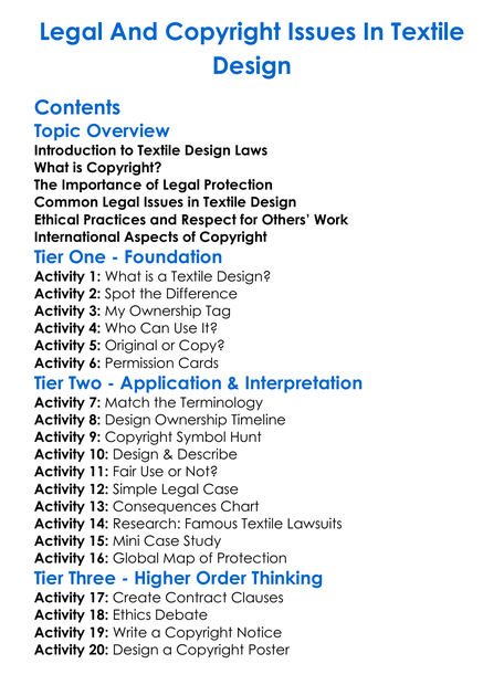 Legal And Copyright Issues In Textile Design Worksheet Activity Booklet