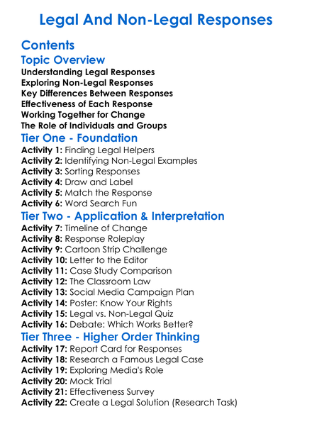 Legal And Non-Legal Responses Worksheet Activity Booklet