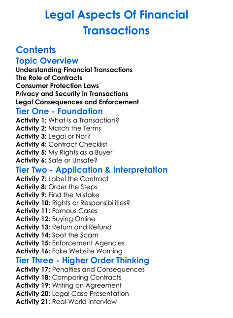 Legal Aspects Of Financial Transactions Worksheet Activity Booklet