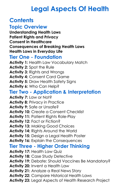 Legal Aspects Of Health Worksheet Activity Booklet